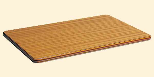 表面は硬いメラミン化粧板で木片を張り合わせ集成材を模した明るい柄