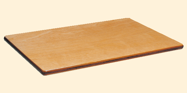 表面は硬いメラミン化粧板で木片を張り合わせ集成材を模した明るい柄