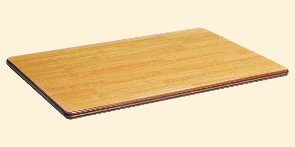 単板の接着はメラミン樹脂を主体として、特に吟味された接着剤を使用していますので、天板の強度はさらにアップ。このため台板割れ、木口にヒビ、剥がれの心配は全くありません。